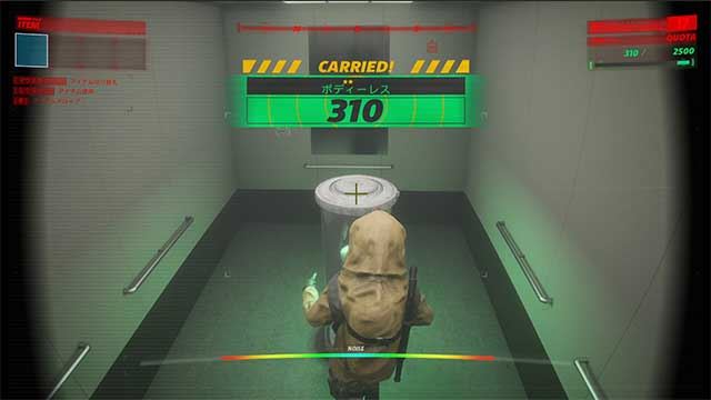 Khi bạn đã tìm thấy các bình hình viên nang chứa «TEST-SUBJECT», hãy mang nó đến thang máy. Hành động này sẽ tạo ra nhiều tiếng ồn và thu hút kẻ thù, vì vậy hãy luôn cảnh giác. Nếu một người không thể mang được, bạn có thể sử dụng hệ thống «Connected Carry» với nhiều người chơi để di chuyển nhanh hơn tốc độ kẻ thù có thể đuổi kịp.