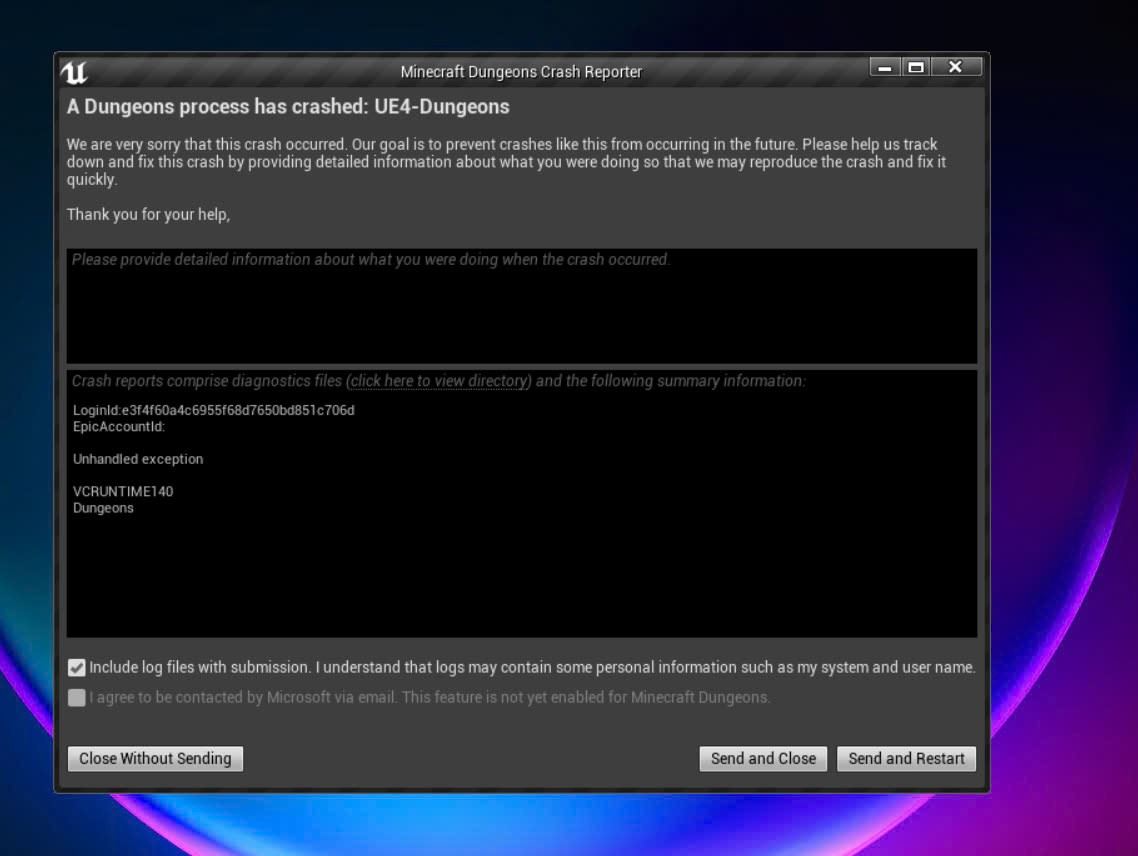 Minecraft Dungeon lỗi crash vì UE4